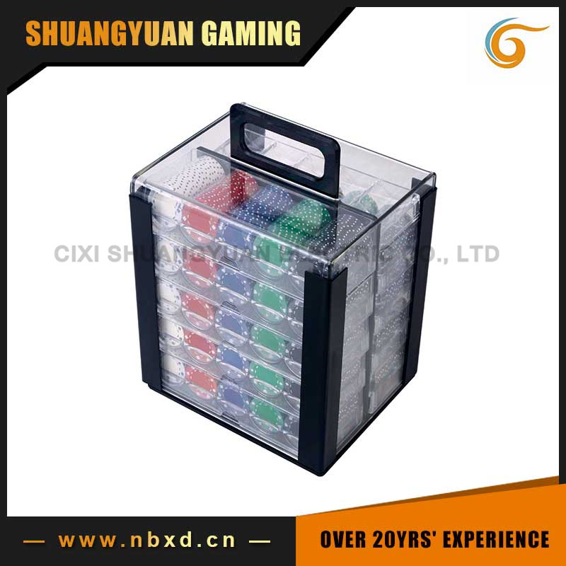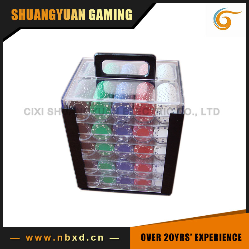 Model number:SY-S48 1)one hard transparent acryl box 2)1000pcs poker chips,chip style available 3)10pcs chip tray,the chip tray have the base and lid 4)OEM accepted 5)FOB port:Ningbo harbor 6)MOQ:300sets 7)Leading time:30days 8)Package:each set has a inner carton,then in an outer carton 9)Payment:by T/T or western union,35% deposit and 65% balance