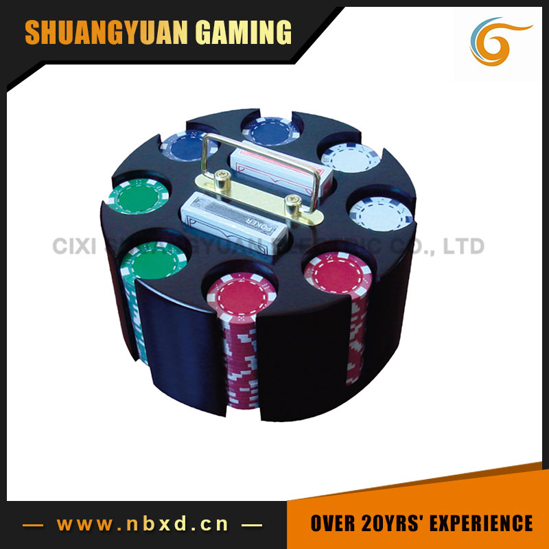 Model number:SY-S41 1)Wooden rotating poker caddy 2)The caddy has different styles: straight corner and round corner. About the handle have two style too 3)200pcs poker chips,chip style available 4)2 standard decks of playing cards 5)FOB port:Ningbo harbor 6)MOQ:1500sets 7)Leading time:30days 8)Package:each set has a inner carton,4sets in an outer carton 9)Payment:by T/T or western union,35% deposit and 65% balance